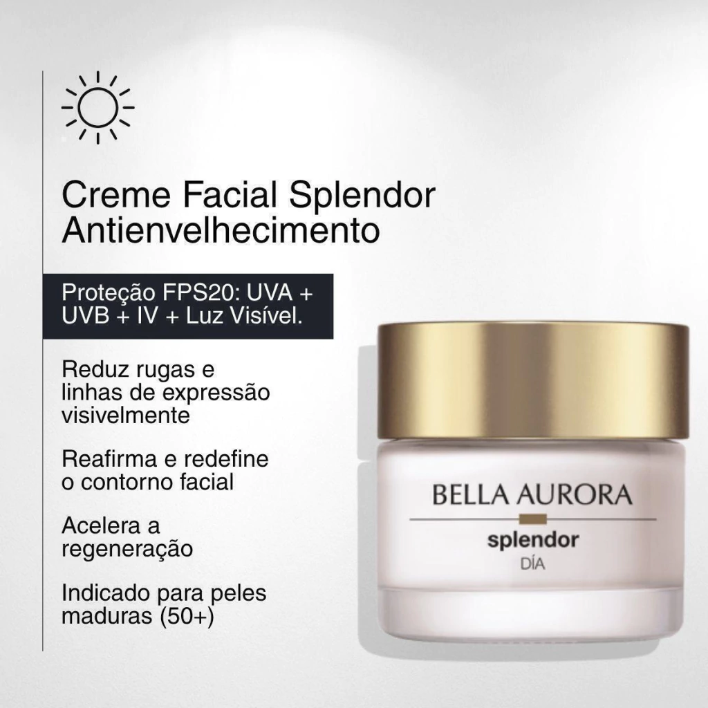 O Creme Bella Aurora Diurno Splendor 10 é um tratamento anti-envelhecimento. Contém 50ml de produto, ideal para uso diurno. Este creme é especificamente formulado para atender às necessidades de cuidados anti-envelhecimento.